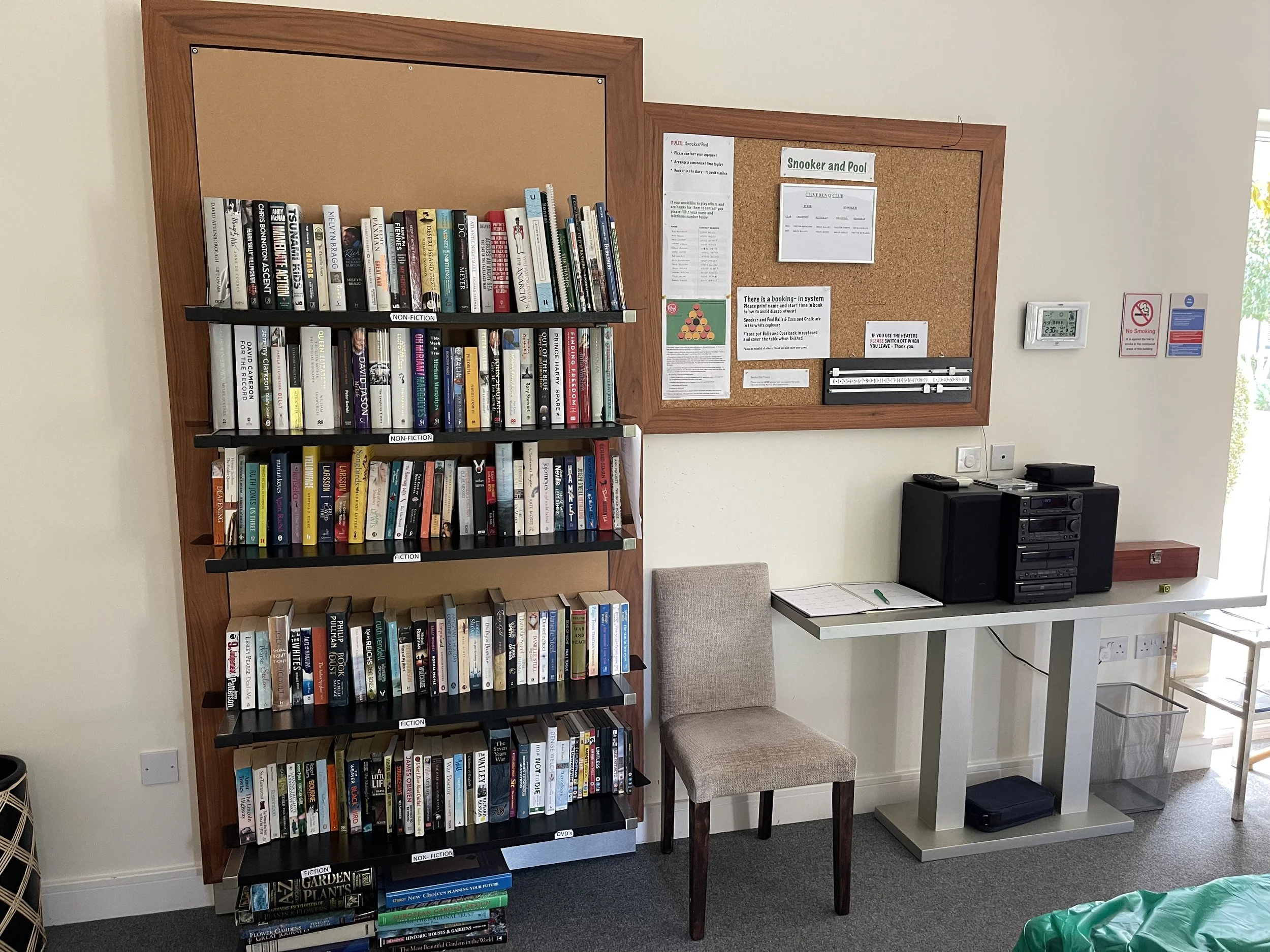 There is a collection of books, jigsaws, games and DVDs in Pavilion 2 which have been donated by residents and is looked after by Anne Hanford. The fiction books are arranged in alphabetical order of the author’s name; the biographies and autobiographies by the name of the person; the remainder of non-fiction books are in broad subject groups. These include some about the local area.